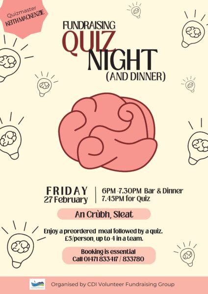 The event is organised by the CDI Voluntary Fundraising Group. The Quizmaster for the night is Keith MacKenzie.